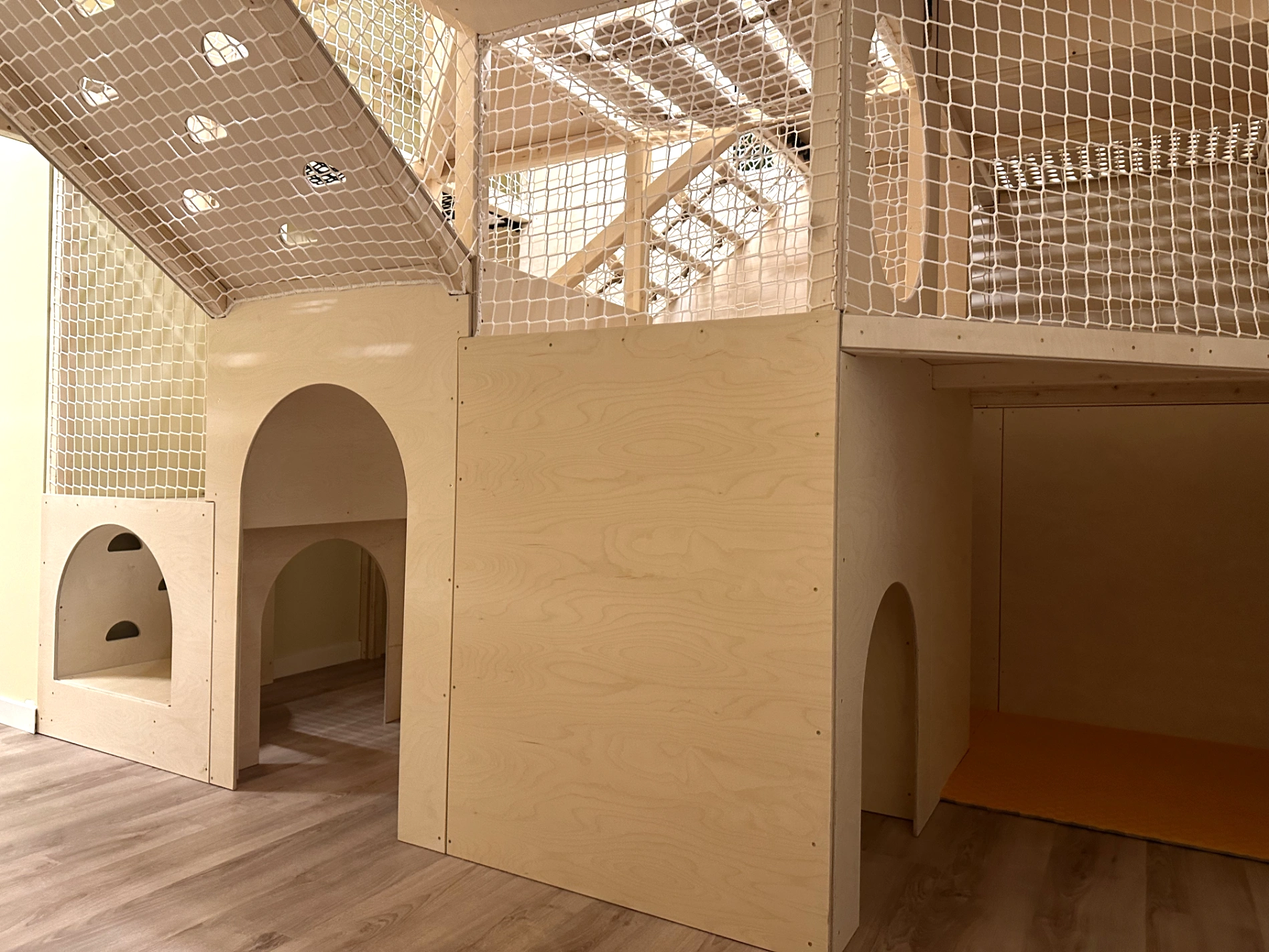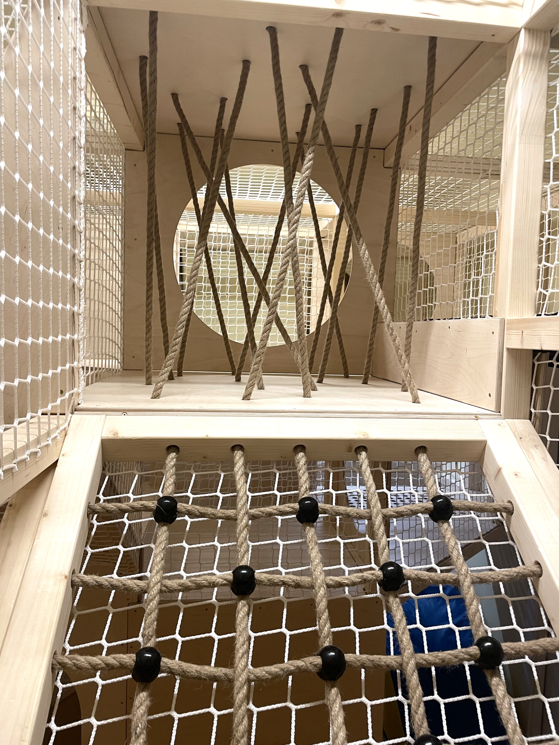 Naszych rozbrykanych Małych Klientów zapraszamy do Małpiego Gaju. Na trzech poziomach drewnianej konstrukcji zaprojektowanej w duchu metody Montessori dzieciaki mogą wspinać się, zjeżdżać, skakać i chować się w nieskończoność.